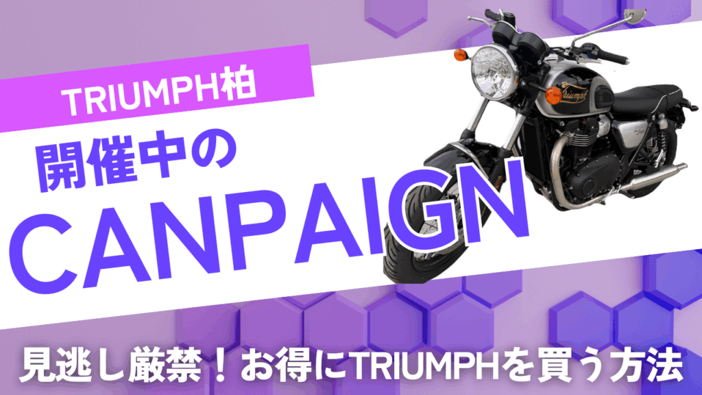 トライアンフ 最新キャンペーン一覧|柏店まとめ 実施されている トライアンフ柏店で開催しているキャンペーンをすべてまとめました。初めての方でも分かりやすく、モデルごとの特典・支払い例・来店までの流れ…