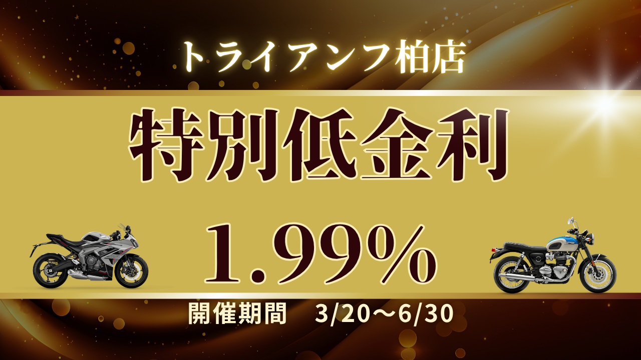 期間中、トライアンフ柏で新車ご購入時にローンをご利用いただくと