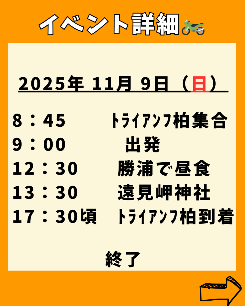 【第2回ツーリングイベント】11月9日(日)開催!!🏍