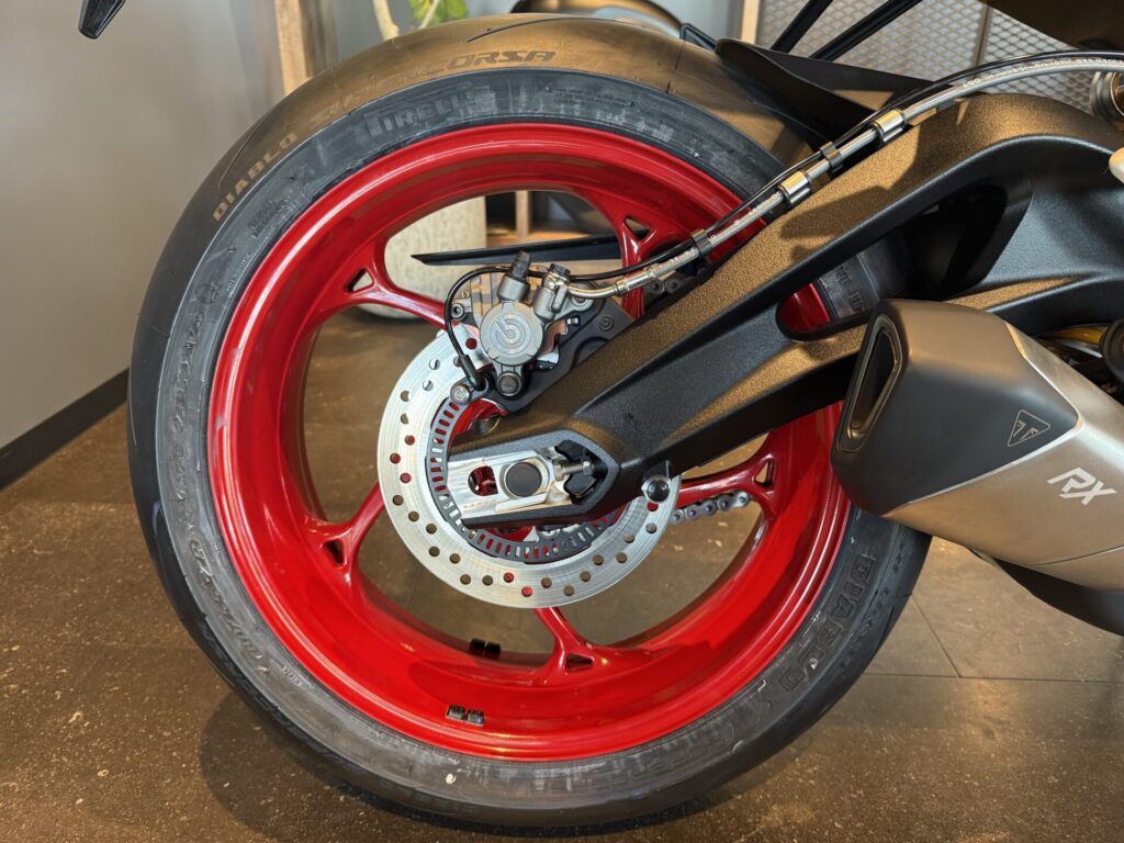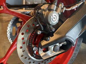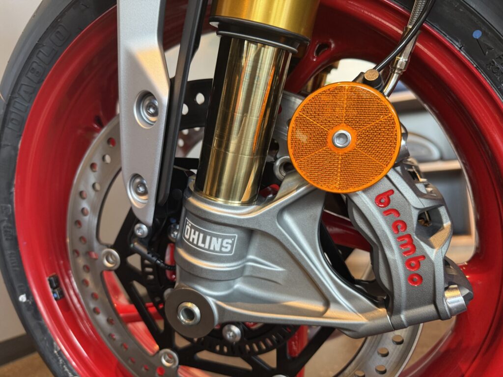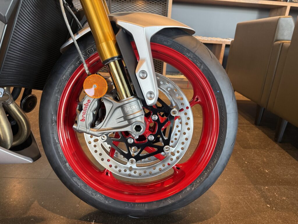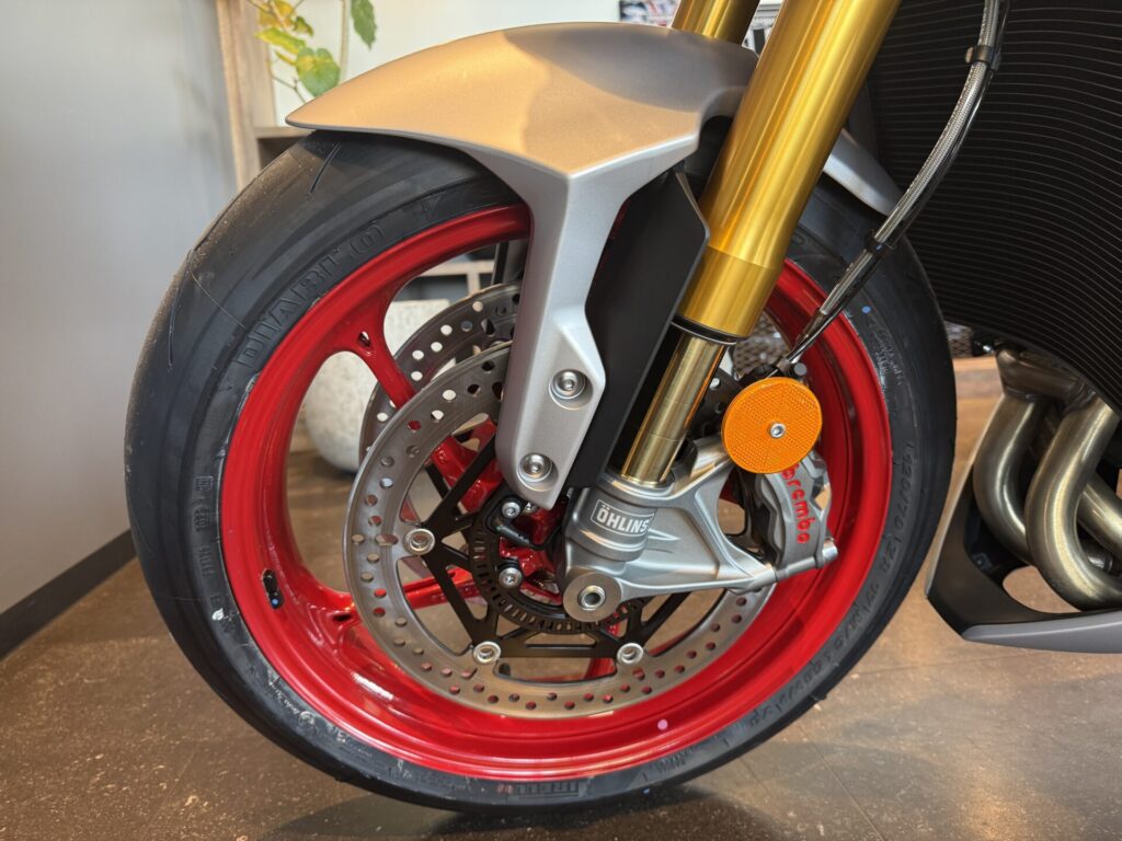 | フロントブレーキ | 10 mm フローティングダブルディスク、Brembo Stylema 4ピストンラジアルモノブロックキャリパー、OCABS、Brembo MCS ラジアルマスターシリンダー |