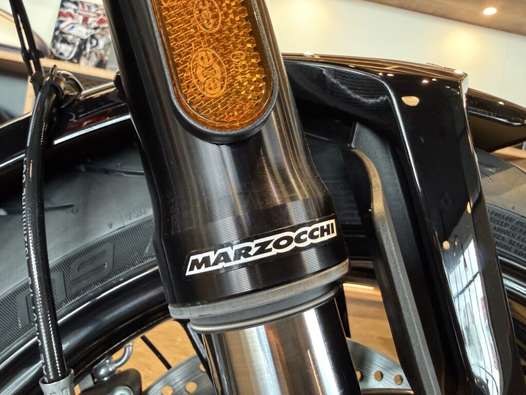 フロントサスペンション Marzocchi製43mm径フォーク、トラベル量120 mm