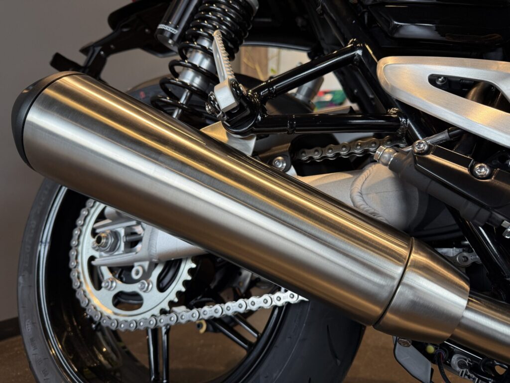 エグゾーストシステム ブラッシュドステンレススチール2イン2エキゾーストシステム、ツインサイレンサー