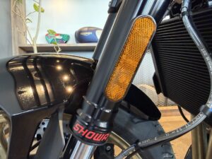| フロントサスペンション | Showa製 41mm径 倒立式 SFF-BP、コンプレッションおよびリバウンドダンピング調整機構付き、ホイールトラベル120 mm |