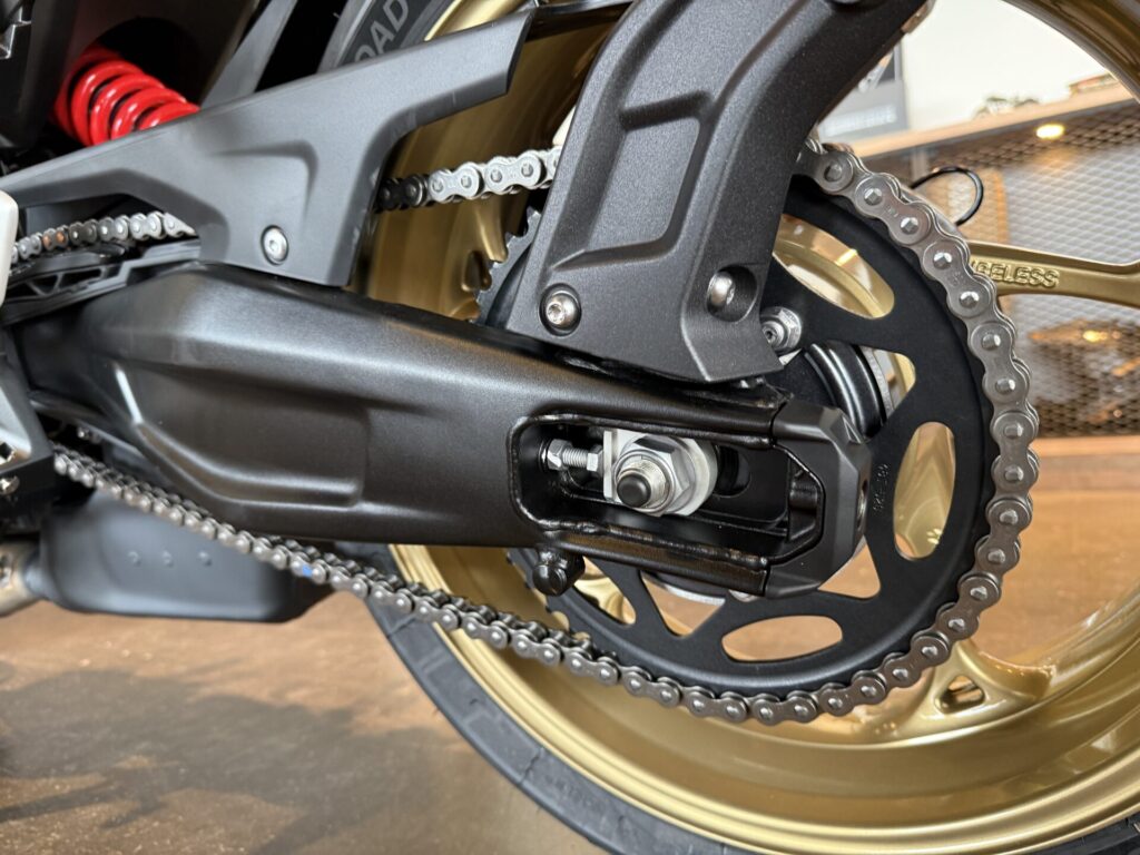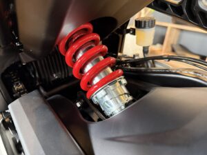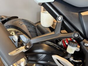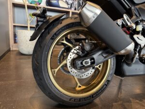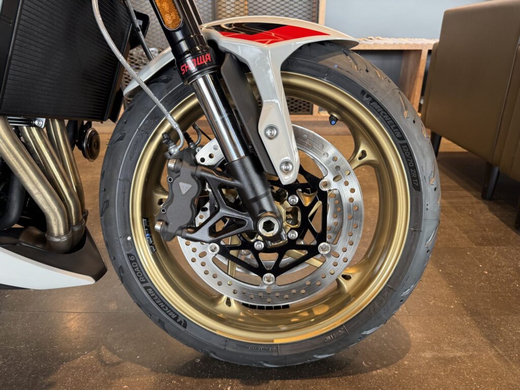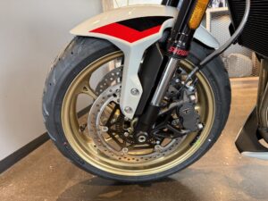 フロントサスペンション Showa製 41mm径 倒立式 SFF-BP、コンプレッションおよびリバウンドダンピング調整機構付き、ホイールトラベル120 mm